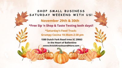 Join us to shop on small business Saturday at Knick Knacks & More in Irmo!